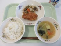 ●今日の給食●・ごはん・鶏肉の唐揚げ・大歳のごっつお・みそ汁・牛乳https:/...