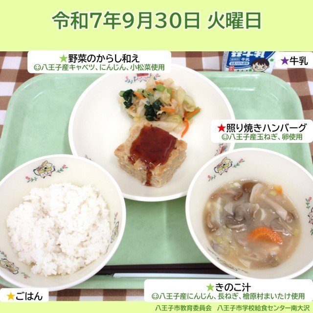 9月30日の給食【給食センター南大沢】