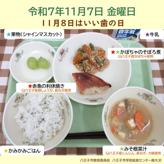 11月7日の給食【給食センター南大沢】