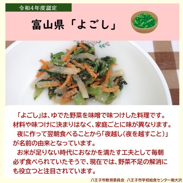 (😊...八王子産食材を使っている献立)