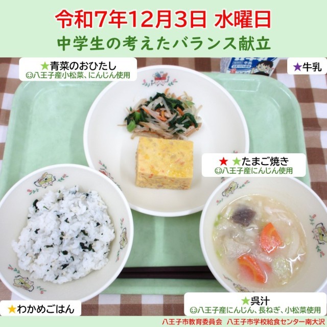 12月3日の給食【給食センター南大沢】