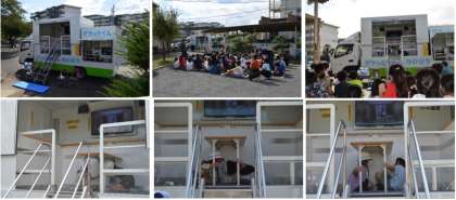 清水小学校で、9月10日に3・4年生を対象とした起震車体験を実施。八王子市生活安全部防災課が用意した「グラットくん」という起震車を使って、震度6強までの地震を体験しました。
