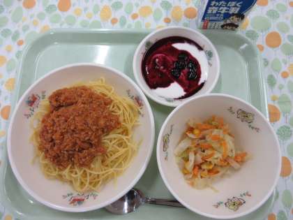 ミートソースは朝から3時間ほど煮込んで作りました。玉ねぎの甘味も出てとてもおいしくできました。みなさんが喜んでくれると嬉しいです。