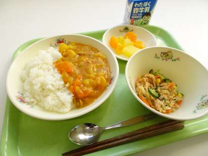 カレー・シチューのルーやハンバーグなども加工品を使わずに、調理員さんの手作りです。