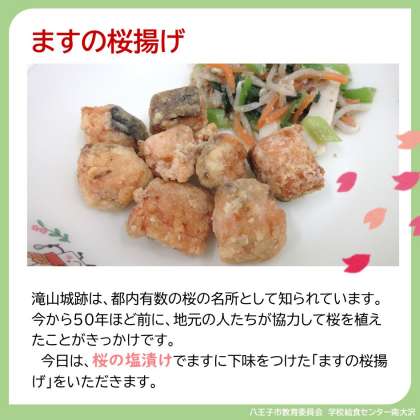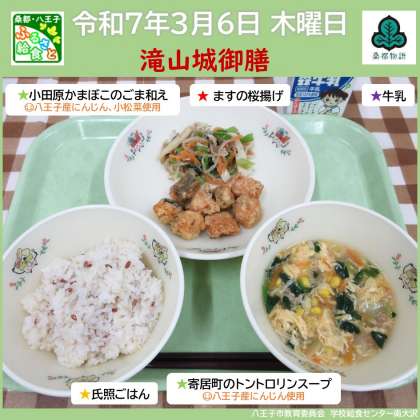 今日は、八王子市・寄居町・小田原市の食材や滝山城をイメージした献立を提供します。