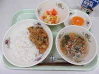 ●今日の給食●・ごはん・マーボー大根・ごまおかか和え・ワンタンスープ・果物(みか...