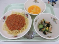 ●今日の給食●・スパゲティミートソース・わかめサラダ・オレンジポンチ・牛乳htt...
