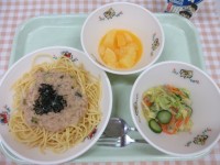 ●今日の給食●・はち大根おろしスパゲティ・野菜とジャコのサラダ・オレンジポンチ・...