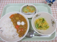 ●今日の給食●・ファンモン★エッグカレー・ベイビーズ太陽サラダ・桑の都クラフティ...
