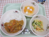 ●今日の給食●・ポークカレーライス・フレンチサラダ・フルーツ白玉・牛乳https...
