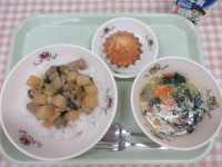 ●今日の給食●・ファンモン★エッグカレー・ベイビーズ太陽サラダ・桑の都クラフティ...