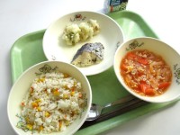 ●今日の給食●・コーンピラフ・白身魚のハーブ焼き・ABCスープ・ジャーマンポ...