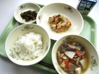 ●今日の給食●【旬:鮭】・ごはん・鮭のちゃんちゃん焼き・茎わかめのしょうが炒...