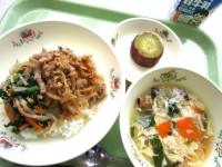 ●今日の給食●・ビビンバ・中華たまごスープ・焼き芋・牛乳市ホームページ【給食セン...