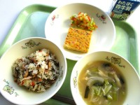 ●今日の給食●・きのこピラフ・ポテトオムレツ・3色サラダ・野菜スープ・牛乳市ホー...