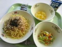 ●今日の給食●【旬:大根】・はち大根おろしスパゲティ・コールスロー・果物(り...