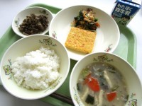 ●今日の給食●・ごはん・厚焼き卵・ごま和え・八王子産米の粕汁・じゃこと牛...