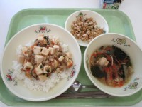 ●今日の給食●・ごはん・マーボー豆腐・ポップビーンズ・中華スープ・牛乳市ホームペ...