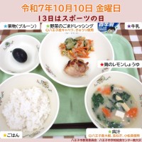 《今日の献立》ごはん鮭の塩焼き野菜の彩り和え😊豚汁😊牛乳(😊...八王子産食材を...