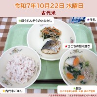 《今日の献立》秋月ごはん石垣揚げ野菜のピリリ漬け😊八王汁😊菊花みかん牛乳(😊.....