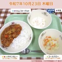 《今日の献立》チキンカレー😊コールスロー😊りんごヨーグルト牛乳(😊...八王子産...