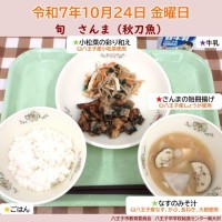 《今日の献立》ごはん鯖のごま風味焼き五目きんぴら芋の子汁😊牛乳(😊...八王子産...