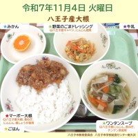 《今日の献立》チキンカレー😊コールスロー😊りんごヨーグルト牛乳(😊...八王子産...