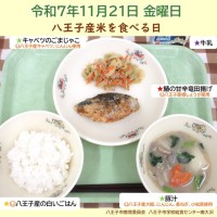 《今日の献立》ごはんよごし😊ホッケの塩焼き呉汁😊牛乳(😊...八王子産食材を...