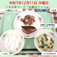 《今日の献立》ごはんよごし😊ホッケの塩焼き呉汁😊牛乳(😊...八王子産食材を...