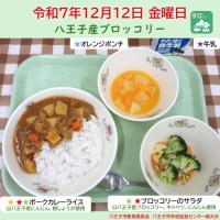 《今日の献立》ポークカレーライス😊ブロッコリーのサラダ😊オレンジポンチ牛乳(😊....