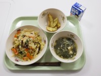 ●今日の給食●・あんかけやきそば・青のりポテト・青菜と豆腐のスープ・牛乳◆献立照...