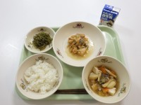 ●今日の給食●・ごはん・鮭のちゃんちゃん焼き・茎わかめのしょうが炒め・のっぺ...