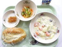 ●今日の給食●・パン・手作りりんごジャム・クリームシチュー・大根のフレンチサ...