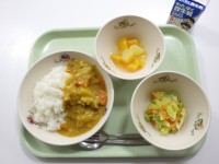 ●今日の給食●・ファンモン★エッグカレー・ベイビーズ太陽サラダ・桑の都クラフ...