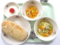 ●今日の給食●・チリビーンズサンド・わかめサラダ・ポトフ・牛乳◆献立紹介【給...