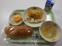 ●今日の給食●・スパゲティミートソース・フレンチサラダ・オレンジポンチ・牛乳◆献...