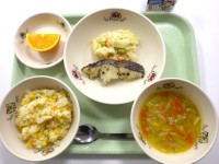 ●今日の給食●・コーンピラフ・白身魚のハーブ焼き・ポテトカルボナーラ・ミネストロ...