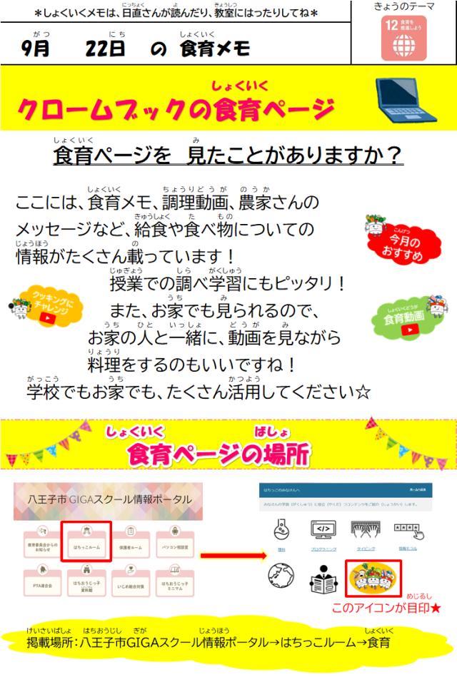 9月22日(月)の給食 公開日 2025/09/22 更新日 2025/09/22 給食室 【メニュー】・ごはん・ホキのごまがらめ・茎わかめのきんぴら・かきたまじる・牛乳【八王子産の食材】たまご、小松菜 いいね(0)