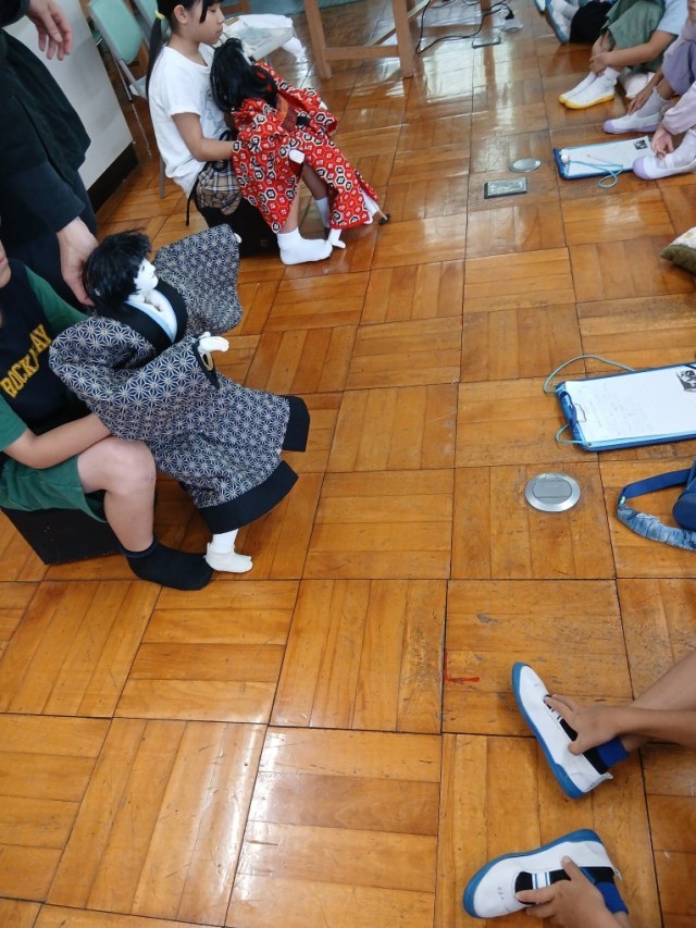 最後に家元が「東海道中膝栗毛」の一場面を演じてくれました。「動きがのびのびしている。」「こんなに大きな表現ができるのがすごい。」「人形のつま先を立てながら動いていました。人形には思えない動きでした。」など感心しました。