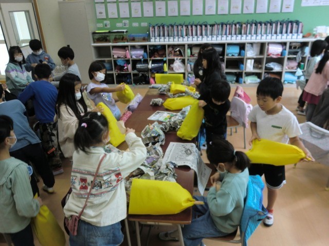前回に引き続き、今日も動物に変身するための準備です。今日はそれぞれの動物のしっぽ作りをしました。前回の耳と違って、しっぽは大きいので一人で作るのが難しい…。そこで、チームで上手に協力しながら、全員のしっぽを作り上げることができました。耳・しっぽ・ちょうネクタイを着けて、音楽会に参加する準備は万端です! 本番がますます楽しみになってきました。
