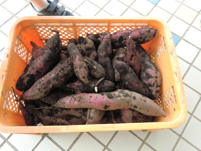 生活科で育てていたサツマイモの芋堀りをしました。土の中でどうなっているのか心配でしたが…。掘ってみたら、出てくる出てくる! 大きなサツマイモがどんどん掘れて、一人1本持っても余るほどでした。昨年同様、今年もふかして食べる予定です。味もおいしいといいのですが。