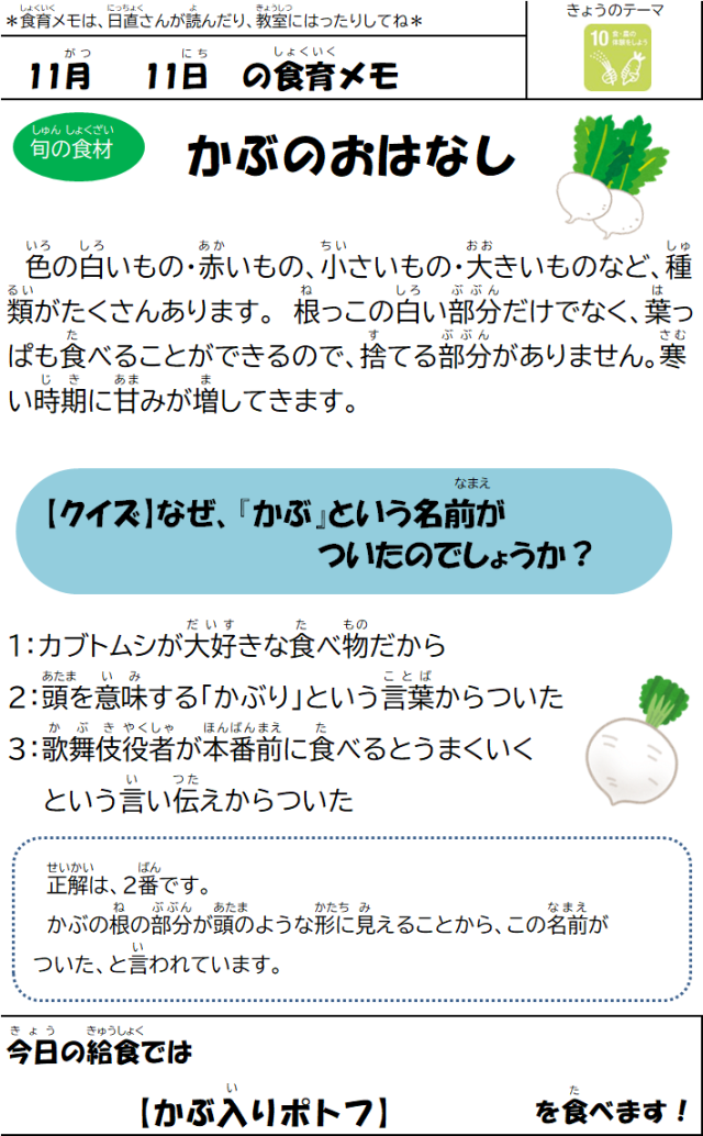 11月11日(火)の給食