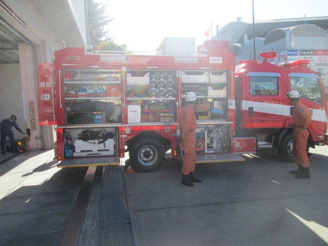 多摩消防署に行き、消防車や消火設備、消火活動訓練を見学しました。訓練では、はしご車の仕組みや消防士の様々な動きを知り、チーム全体で消火活動に従事することを知りました。救助車には消火活動に役立つ様々な道具を教えてもらいました。すぐに消火に駆け付けるための工夫や、火を消すための車や道具があることを学びました。
