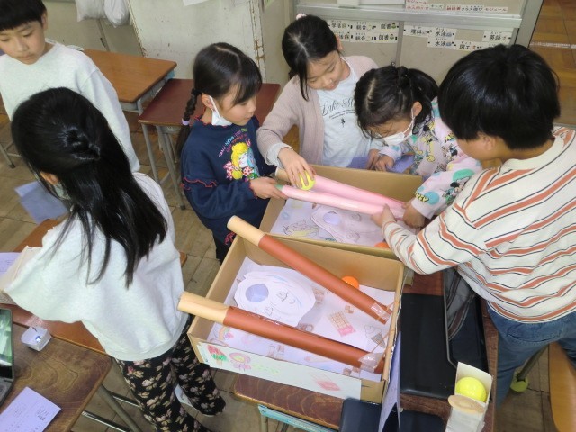 今日は、みんなが楽しみにしていた「子どもまつり」でした。3年生からはお店を出す側になるので、2年生にとっては、思いきり遊べる子どもまつりは今回が最後。ということで、13時間目まで、思う存分に遊んで楽しんでいました。お兄さんやお姉さんの話をしっかり聞いて遊んだり、一緒に回っている友達を応援したりと、遊び方もとても上手でした。来年、どんなお店を出すのか、今から楽しみですね!
