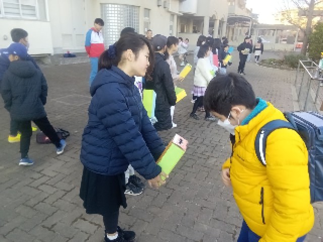 朝から元気な声で 代表の児童たちが募金 道を行っています。