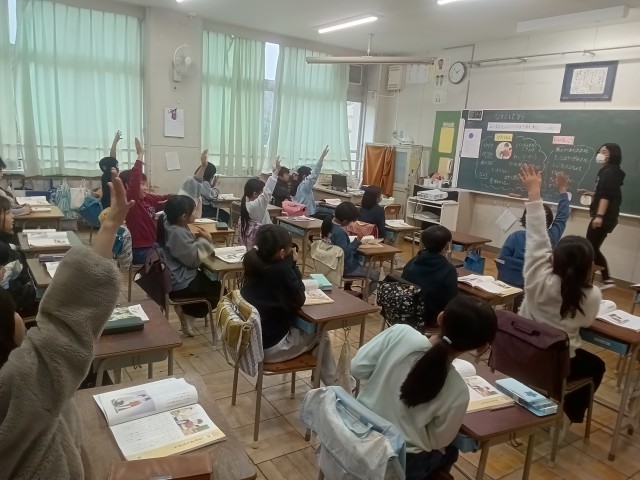 よく手が上がります。友達が発言する時には発言する人の方を見て聞くことができます。