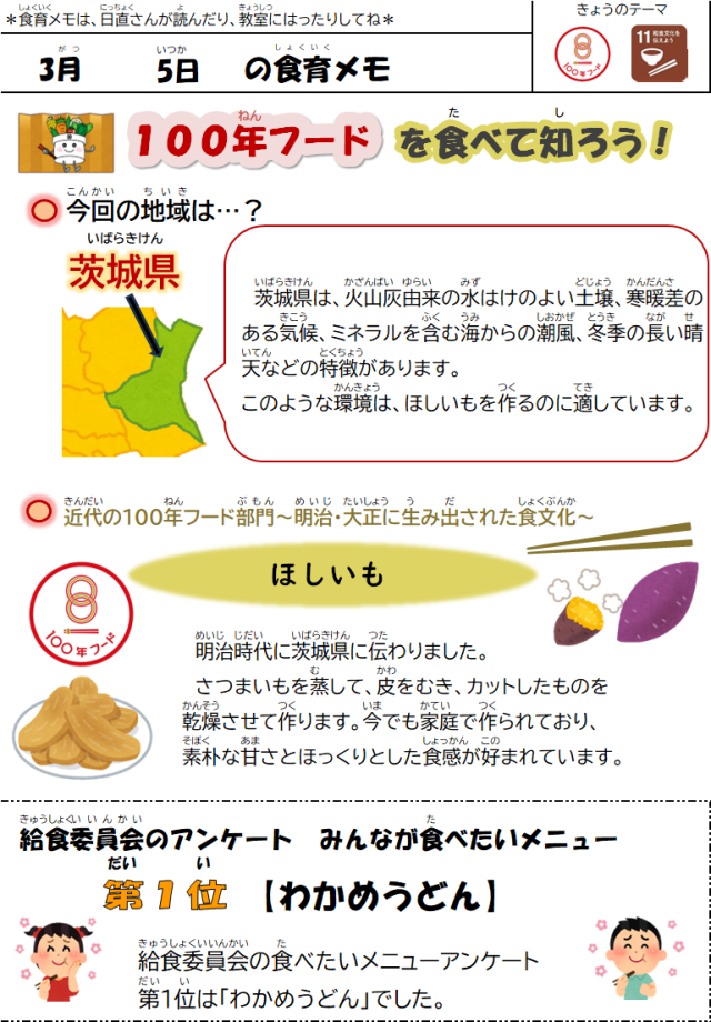 3月5日(木)の給食 公開日 2026/03/06 更新日 2026/03/05 給食室 【メニュー】・わかめうどん・豚しゃぶサラダ・こんにゃくのきんぴら・ほしいものカップケーキ・牛乳【八王子産の食材】小松菜、にんじん、たまご いいね(0)
