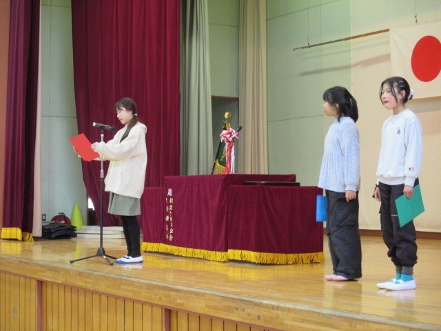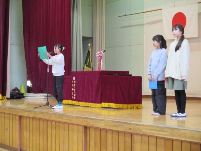 児童代表の言葉は、5年生です。3人ともしっかりと発表できました。来年度の秋葉台小の代表として学校をしっかりと進めていく期待がもてる発表でした。