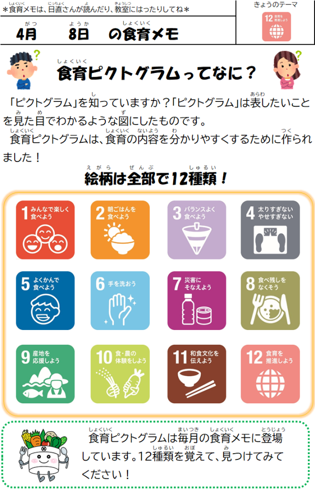4月8日(水)の給食 公開日 2026/04/08 更新日 2026/04/08 給食室 令和8年度の給食が始まります。今年度も、どうぞよろしくお願いします。【メニュー】・ごはん・肉豆腐・野菜のおかか和え・いりこのごまがらめ・牛乳【八王子産の食材】小松菜、キャベツ いいね(0)