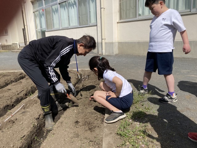みんなで協力してジャガイモを植えました
